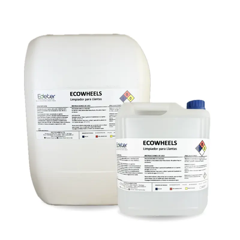 Eco-Wheels es un abrillantador de llantas diseñado para remover restos de polvo de frenado, hollín, alquitrán, grasa y barro acumulado. Este producto limpia sin deteriorar el aluminio ni la pintura.