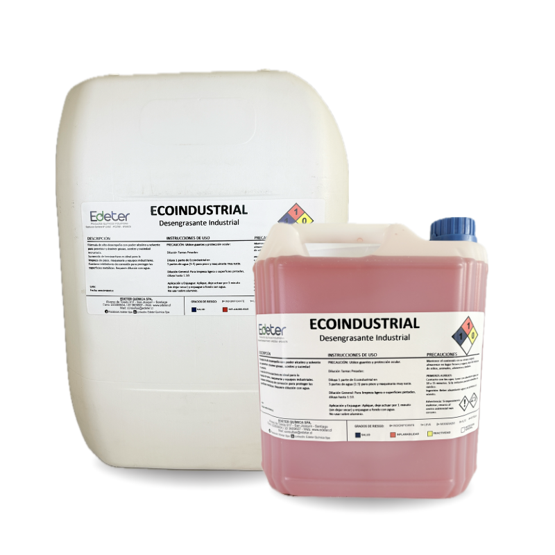 Ecoindustrial es un desengrasante industrial formulado para la limpieza y mantenimiento diario de superficies metálicas y equipos industriales. Remueve grasa, aceites, polvo adherido y otros contaminantes. Se utiliza en diversas industrias, como la metalmecánica, manufacturera, producción industrial, maestranzas y construcción. Su uso regular ayuda a mantener la eficiencia de las máquinas y a que el equipo se conserve en buen estado por más tiempo.