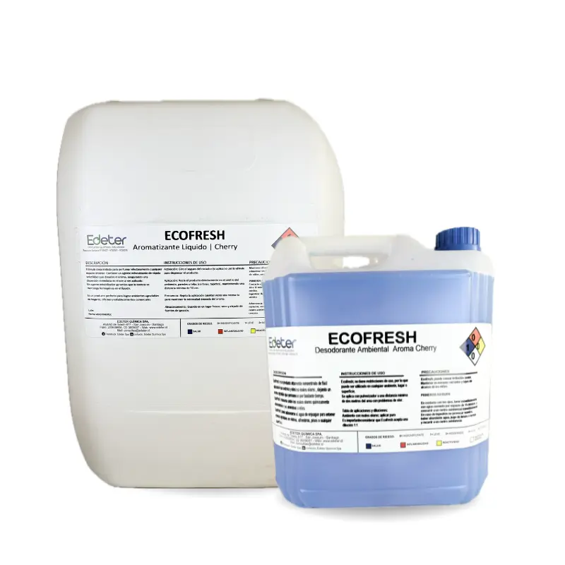 Ecofresh es un desodorante ambiental industrial en presentaciones de 5 litros y 20 litros está formulado con componentes que neutralizan y eliminan los malos olores de manera rápida y efectiva. Su acción prolongada lo hace ideal para áreas de alto tránsito como zonas de alto tránsito. Su fórmula líquida permite que se pueda utilizar en aviones o buses. Este producto deja un ambiente fresco y agradable, contribuyendo a mantener espacios higiénicos.