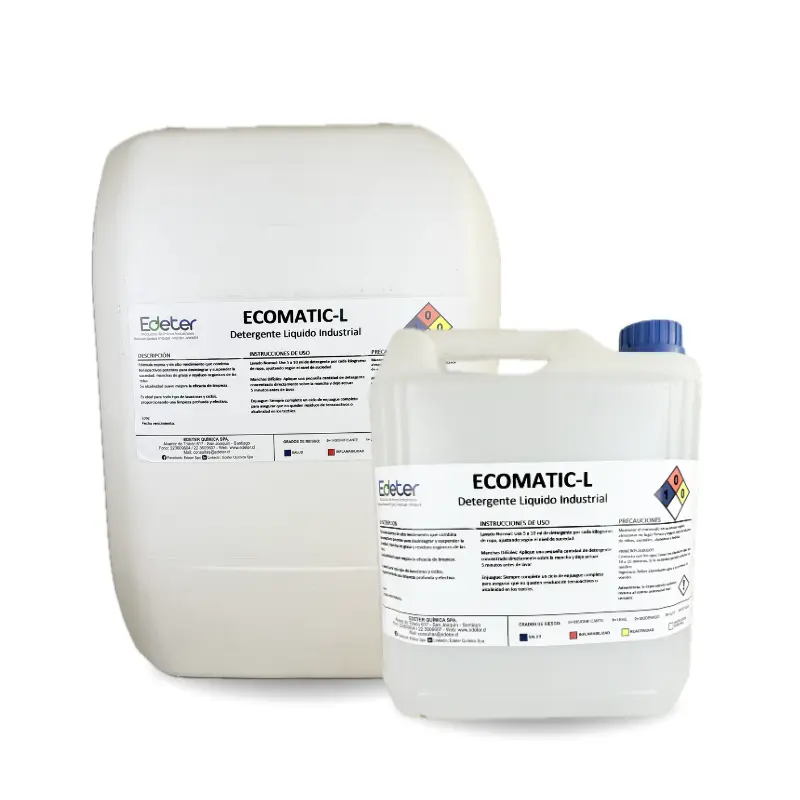 Ecomatic – L es un detergente líquido para lavandería diseñado para remover manchas difíciles. Su formulación ofrece un alto rendimiento, ideal para entornos profesionales. Actúa de manera eficaz, dejando las prendas limpias sin dañar las fibras.