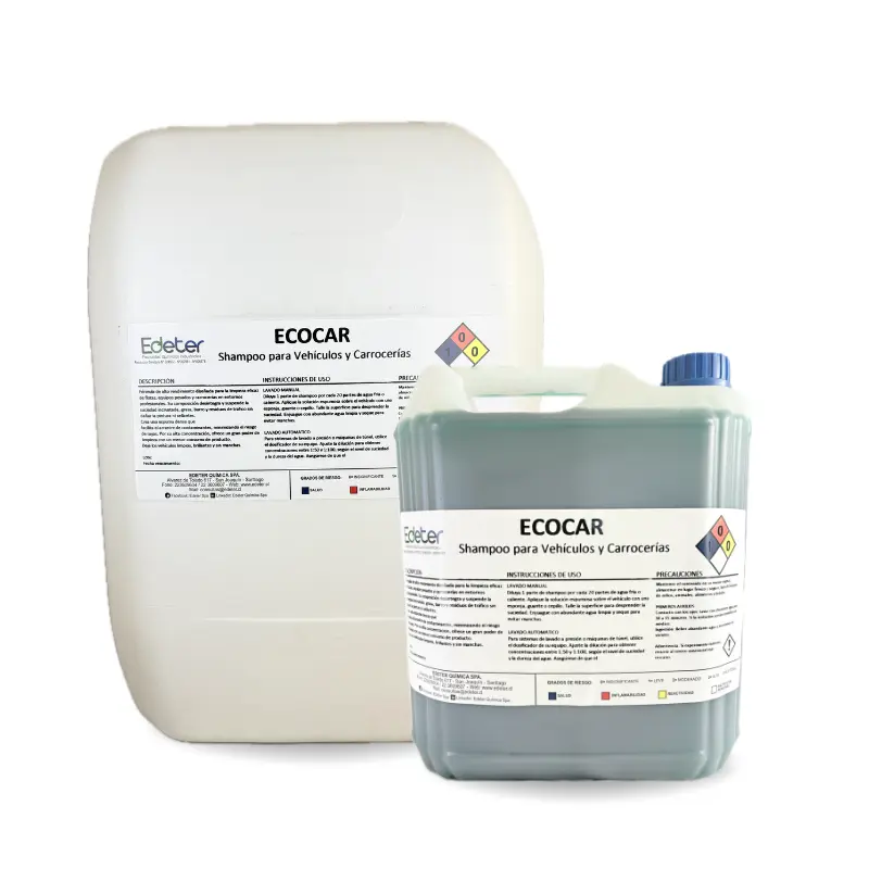 Ecocar es un shampoo para lavar autos diseñado para la limpieza profesional de vehículos. Este producto elimina la suciedad sin dañar la pintura y gracias a sus activos devuelve el brillo a la carrocería. No contiene componentes abrasivos, por lo que es seguro para las superficies metálicas y otras partes del automóvil.